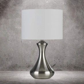 Obwohl ein Stoffschirm das Licht bereits angenehm weich werden lässt, verfügen viele Tischlampen zusätzlich über einen integrierten Dimmer, um die Helligkeit jederzeit den eigenen Wünschen anzupassen. Ob die Leuchte hierfür z. B. einen Zugschalter oder einen Touchdimmer besitzt, ist produktabhängig.