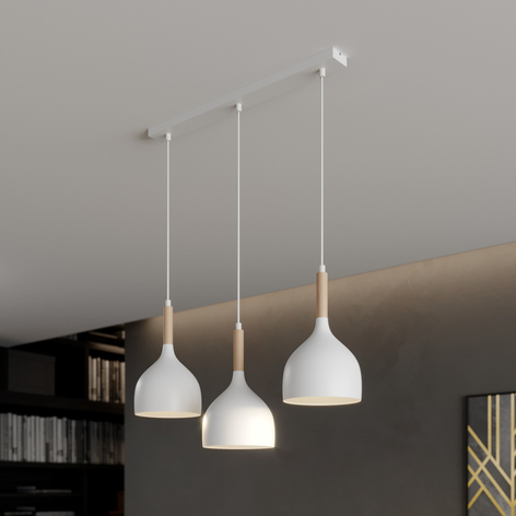 Hängeleuchte Noak, weiß/holz natur, 3-flammig lang
