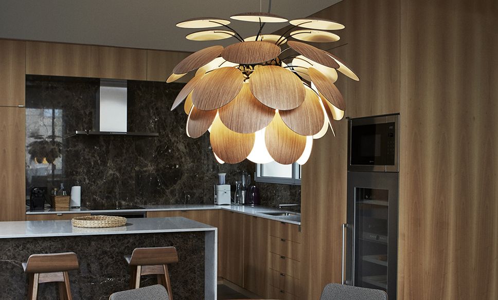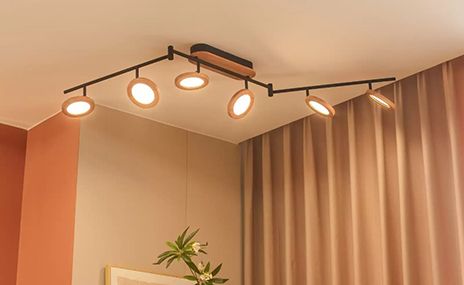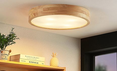 Lichtspender mit Wohlfühl-FlairAls natürlicher Rahmen für Lichtpanels, die großflächig diffuses Licht spenden, eignet sich Holz ebenso wie als Akzent für mehrflammige Deckenleuchten. Und auch der große, Runde Schirm ist wie dafür gemacht, die Maserungen jeder Holzart zu präsentieren. Die Holzlampe an der Decke lässt sich optimal auf den persönlichen Einrichtungsstil abstimmen. Was die Helligkeit in Lumen (lm) anbelangt, sind 100-150 lm/m² im Wohnraum empfehlenswert.