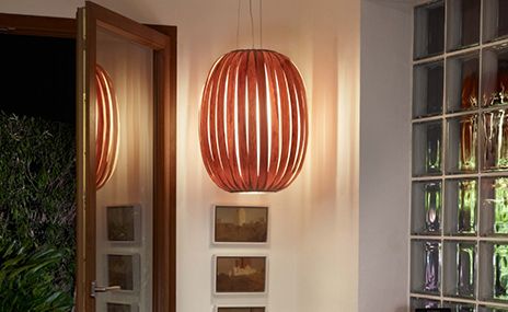 Holz ist ein Material, das sich facettenreich weiterverarbeiten lässt. So lassen sich z. B. aus transluzentem Furnierholz in allen möglichen Einfärbungen wahre Lichtkunstwerke schaffen – teils mit künstlerischer, teils mit romantischer Note. Im Zusammenspiel mit warmweißem Licht entfaltet sich das ganze Wirkungspotenzial.