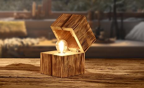In cleane Formen gebracht ist Holz ein Material, das auch im minimalistisch angehauchten Skandi-Chic seinen wohlverdienten Platz hat. Versehen mit fest verbauter LED-Technik sind schlanke Designs möglich, die Dank warmem Lichtschein leuchtende Gemütlichkeit auf den Punkt bringen – mit natürlichen Maserungen.