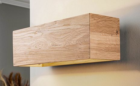 Die Natur auf AugenhöheHolzleuchten für die Wand befinden sich auf Blickhöhe, da sie i. d. R. im oberen Drittel der Wand angebracht werden. Dadurch wirkt das Holz der Wandleuchte umso intensiver und bereichert den Raum um warmes Licht und natürliches Flair. In Sachen Design ist die Auswahl groß: Von schlichten Formen, die der rustikalen Struktur des Materials die Hauptrolle überlassen bis zu Lichtideen, die das Filamentleuchtmittel in den Mittelpunkt stellen, ist alles dabei.