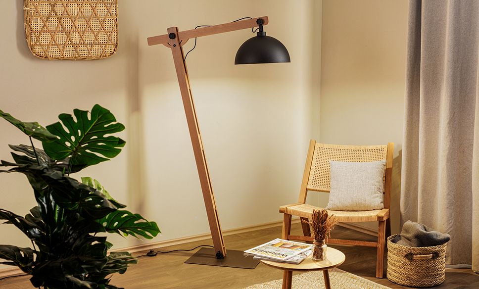 Raumgestaltende Statements aus HolzStehleuchten aus Holz sind markante Einrichtungsobjekte, die den Raum beleuchten, gliedern und gestalten. Je nach Intention des Designers kann die Leuchte clean oder auch ausgefallen wirken. In Kombination mit dem klassischen Stoffschirm erstrahlt das Licht noch einmal weicher und diffuser, was sich perfekt für eine freundliche Lichtatmosphäre eignet.
