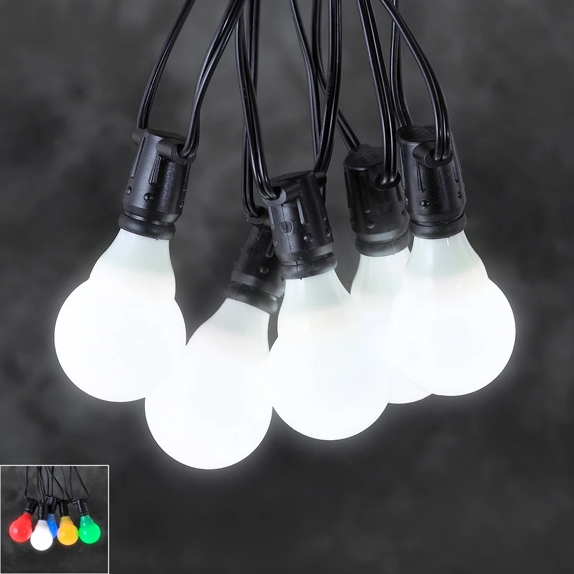 10-flammige Partylichterkette, die sich einfach und schnell mit den Elementen des 24V-Systems von Konstsmide kombinieren lässt. Eine schöne Illumination für private Gärten sowie für die Gastronomie. Mit Schutzart IP44 ausgestattet.