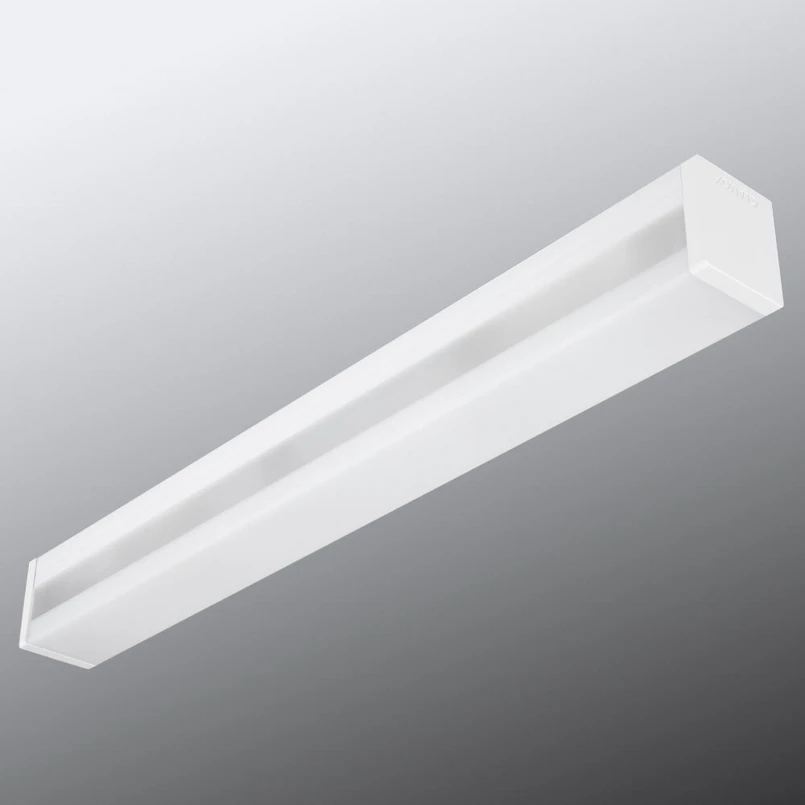 Modern und ganz auf die Funktion abgestimmt zeigt sich die LED-Spiegelleuchte A40-W600 optisch. Das Leuchtengehäuse aus verzinktem Stahl ist weiß lackiert, die Acryl-Abdeckung ist vorderseitig opal und unten sowie seitlich klar gehalten, sodass A40-W600 zu vielen Sanitärausstattungen passt.