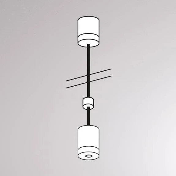 Die Seilabhängung ist aus Metall gefertigt. Mit ihr wird eine Pendelmontage der 2-Phasen-Stromschiene Volare ermöglicht. Die maximale Länge beträgt 100 cm; vor der Montage ist das Kürzen möglich.