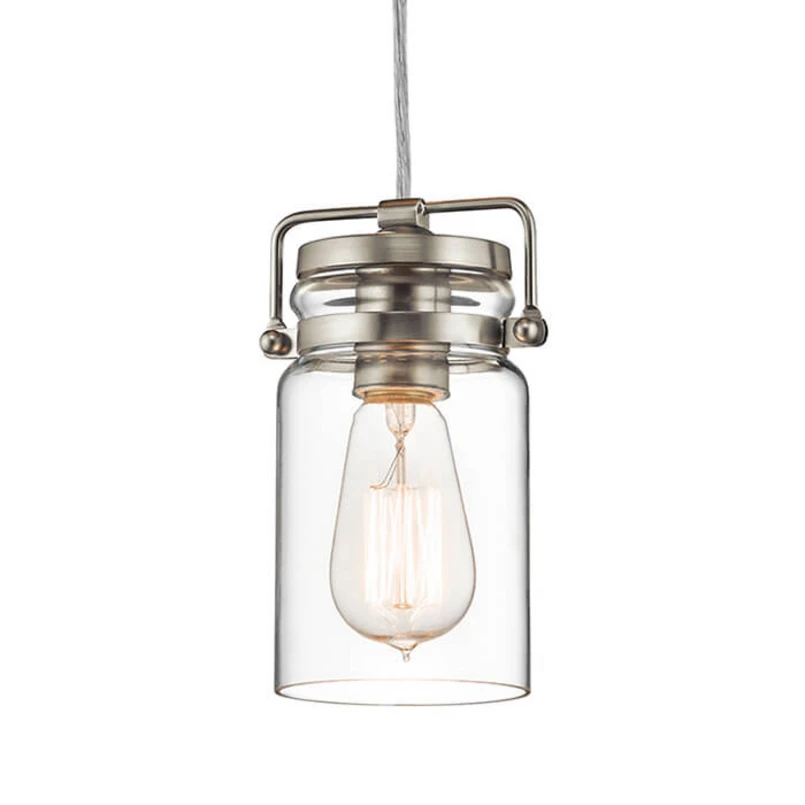 Die Hängeleuchte Brinley wirkt auf der einen Seite industriell, andererseits aufgrund der Form, die von einem Marmeladenglas entlehnt scheint, auch wieder auf gemütliche Weise retro. Der Behaglichkeits- und Dekorfaktor der in ländlich-rustikale oder industriell designte Räume passenden Hängeleuchte wird durch die Wahl eines Leuchtmittels im Vintage-Look noch erhöht. Solche Leuchtmittel sind u. a. im Zubehör extra bestellbar.