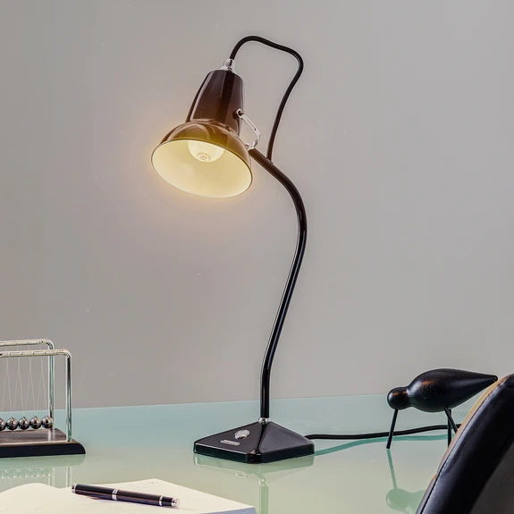 George Carwardine, ein englischer Industrie- und Automobildesigner, lieferte in den 1930er-Jahren das Design für die Tischleuchte Original 1227. Die Mini-Variante ist eine reduzierte Version dieser im Industriedesign gestalteten Leuchte. Anders als ihr großer Bruder hat die Original 1227 Mini einen pyramidenförmigen Fuß mit integriertem Schalter. Der typische Schirm ist jedoch auch bei der Mini-Variante vorhanden. Er lässt sich in der Neigung verstellen. Die Leuchte ist außerdem mit einem Textilkabel bestückt.