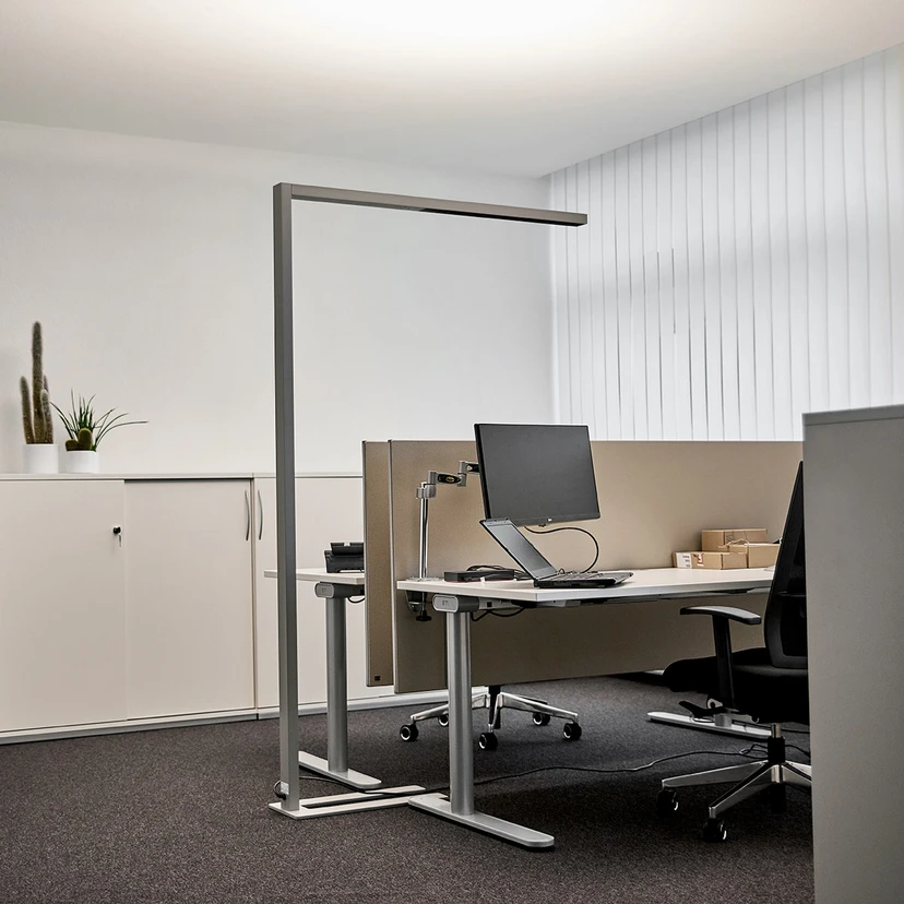 Die Leuchten sind optimiert, um einen Standard-Schreibtisch mit einer Größe von 160 cm x 80 cm ideal, blendfrei und gleichmäßig auszuleuchten. Es empfiehlt sich daher, eine Leuchte pro Tisch einzusetzen.