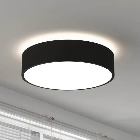 Schwarze, runde LED-Deckenleuchte Vanida mit Up- und Downlight-Funktion für ein schönes Rundumlicht
