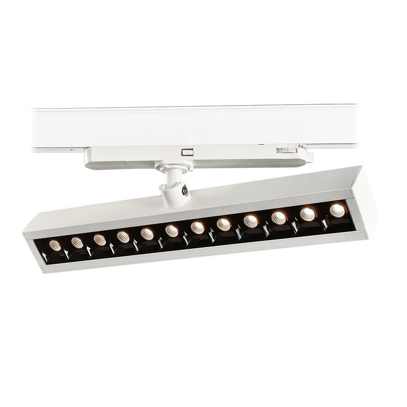 Dieser Strahler bietet zahlreiche Vorteile für die Nutzung in einer gewerblichen Umgebung und kann auch in Büros zum Einsatz kommen, da die LEDs angenehmes, blendfreies Licht erzeugen und zudem flickerfrei leuchten. Die Form des Strahlers ist länglich und er wird mit einem Gelenk an dem Schienensystem angebracht, so dass man ihn bei Bedarf schwenken kann. Das bringt den Vorteil, dass man das Licht so individuell wie möglich anpassen kann. Das gilt auch für Schienensysteme im Allgemeinen, die mit beliebig vielen und verschiedenen Leuchten bestückt werden können. Dadurch kann man der Situation vor Ort hervorragend gerecht werden.