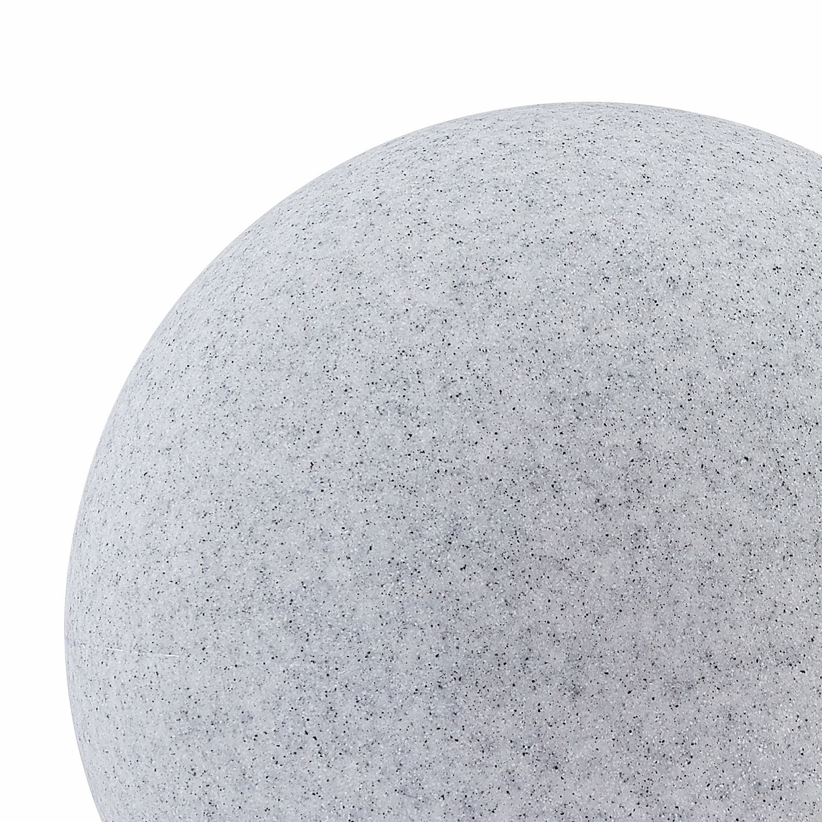 Leuchtende Kugel Orlana in Steinoptik, Schutzart IP65, Steckerzuleitung und E27-Fassung