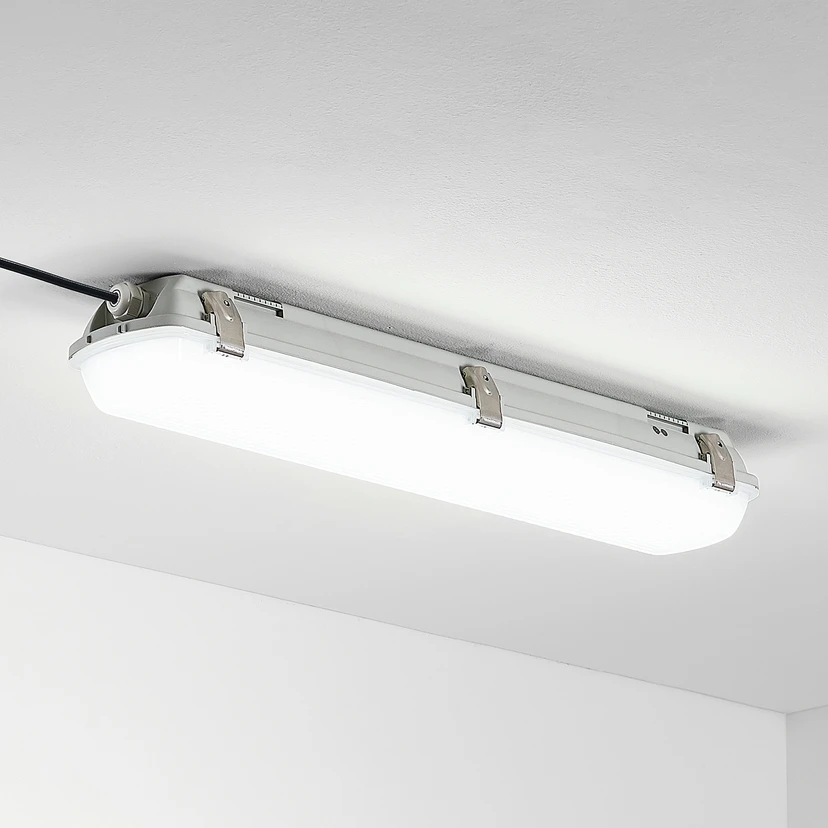 Vor allem im gewerblichen Bereich oder in Feuchträumen rund um Haus und Hof, zum Beispiel der Garage oder einem Keller, ist diese LED-Wannenanbauleuchte eine echte Bereicherung in puncto heller Beleuchtung. Mit der hohen Schutzart können Schmutz und Feuchtigkeit der Wannenleuchte kaum etwas anhaben und sie eignet sich deshalb eben auch für jene Räume, in denen die Luftfeuchtigkeit auch mal höher sein kann. Die LEDs erweisen sich dabei als besonders effizient und sorgen bei vergleichsweise niedrigem Stromverbrauch für eine angemessene Helligkeit. Ihr Licht ist flickerfrei und vor der Montage kann man aus drei Lichtfarben auswählen, die sich mit dem integrierten DIP-Schalter anwählen lassen. Dank des hohen Stoßfestigkeitsgrades zählt Rao zu den besonders robusten Leuchten.