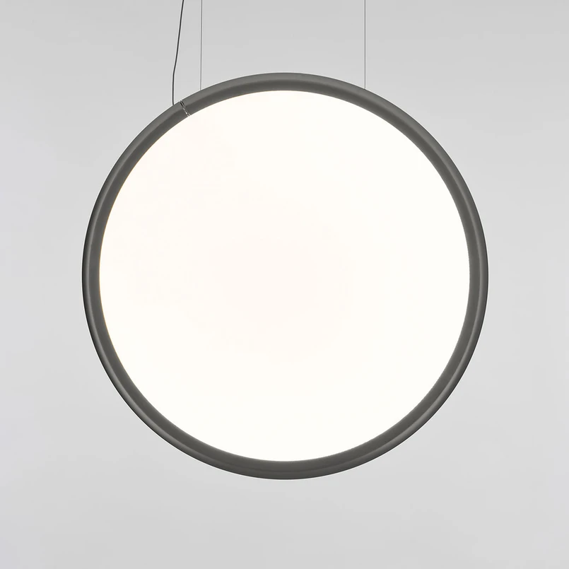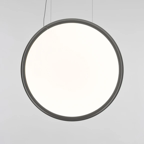 Discovery Vertical stellt ein einzigartiges Beleuchtungselement dar, das seine Erscheinung bei eingeschalteter Lichtquelle vollkommen verändert. Die Leuchte ist sehr minimalistisch aus einem filigranen Aluminiumring und einem perfekt transparenten PMMA-Diffusor gestaltet. Die Optik dringt nicht in das Ambiente ein. Im eingeschalteten Zustand kommt die Leuchte zur Geltung, da die im Ring verbauten LEDs die Oberfläche des Diffusors erleuchten und sanft in den Raum strahlen. Das warmweiße Licht wird gleichmäßig ausgestrahlt und eignet sich daher ideal als Arbeitsbeleuchtung. Die Hängeleuchte kann mittels Push-Funktion über einen separaten Taster gedimmt werden.
