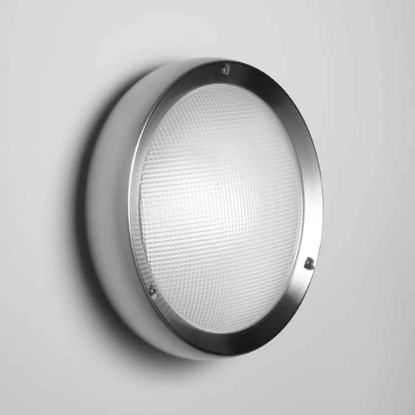 Für diese Wandleuchte finden sich im Außenbereich - einzeln oder zu mehreren platziert - zahlreiche Verwendungsmöglichkeiten, zumal sie auch für die Deckenmontage geeignet ist. Das Gehäuse ist aus Edelstahl (AISI 316) gearbeitet. Der Austritt des Lichts der einzusetzenden Lampe erfolgt durch ein prismatisches Glas, das für eine diffuse Lichtwirkung sorgt. Die Leuchte ist gemäß Schutzart IP65 staubdicht und gegen Strahlwasser geschützt.