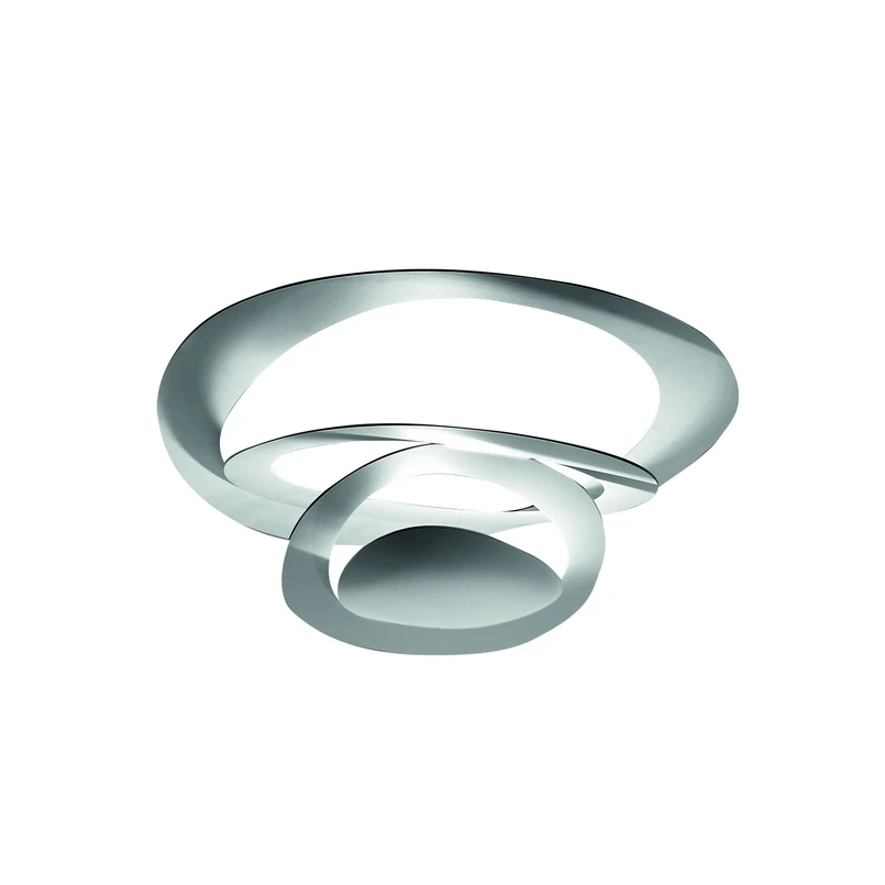 Die LED-Deckenleuchte Pirce erzeugt eine magische Wirkung aus Licht und Form. Sie stammt aus der Leuchtenschmiede Artemide und ist mit hocheffizienter LED-Lichttechnik und einem einzigarten Design bestückt, das im anspruchsvollen Wohn- oder Objektbereich besondere Akzente setzt. Dies erzielt sie in erster Linie durch ihre außergewöhnliche Form, die sich aus organisch geformten Aluminiumringen bildet, die spiralförmig nach unten fallen. Die im Inneren verbauten LEDs geben ihr Licht nach oben ab, so dass neben einer gemütlichen und blendfreien Lichtstimmung auch der Leuchtenkörper besonders in Szene gesetzt wird.