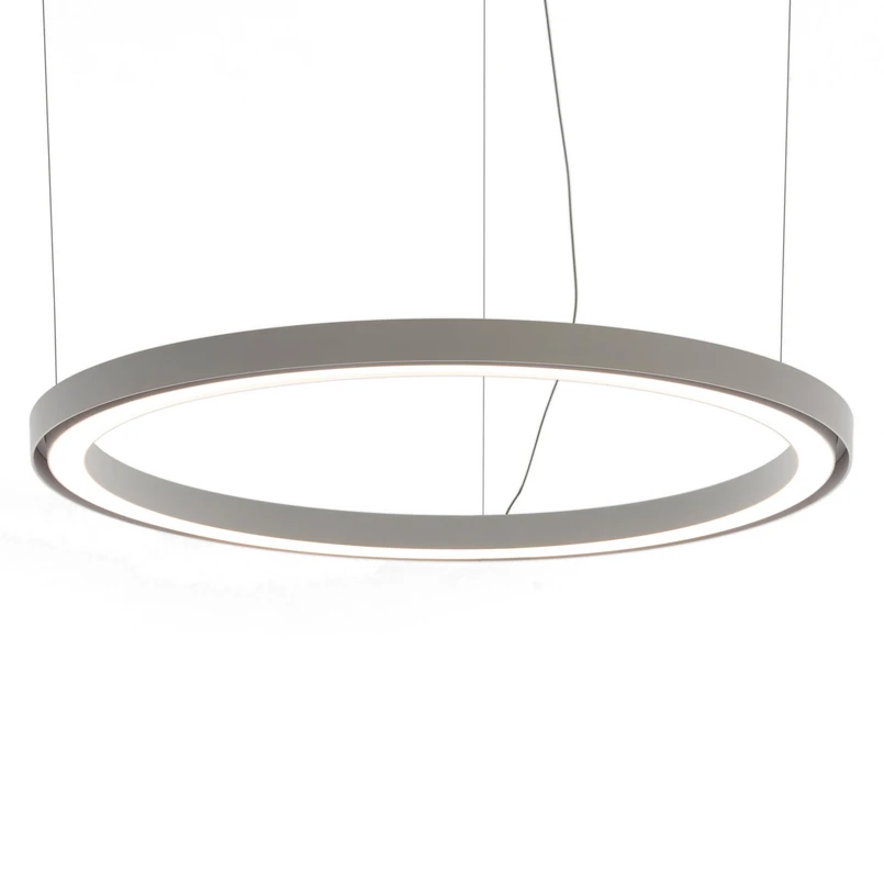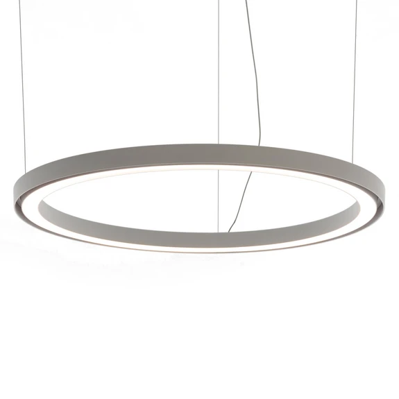 Das Grundelement der LED-Hängelampe ist ein ringförmiger Kreis, der das warme Licht Richtung Boden abgibt. Die Leuchte ist sehr zurückhaltend gestaltet und ist durch ihre klare Formsprache und dezente Farbgebung in der Lage, sich in jeder Raumkonstellation problemlos einzufügen. Sie eignet sich sowohl für den privaten Gebrauch in Küche, Wohn- oder Esszimmer als auch als Hängeleuchte für Veranstaltungssäle, Konferenzräume oder Büros.
