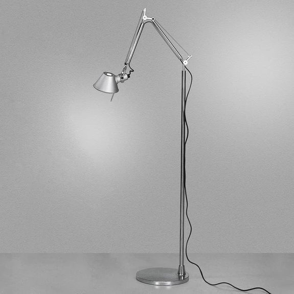 In der aus Aluminium und Stahl gefertigten Stehleuchte Tolomeo Micro wurden warmweiß strahlende LEDs verbaut, deren angenehmes Licht von dem Leuchtenkopf aus Aluminium blendfrei abgestrahlt wird.