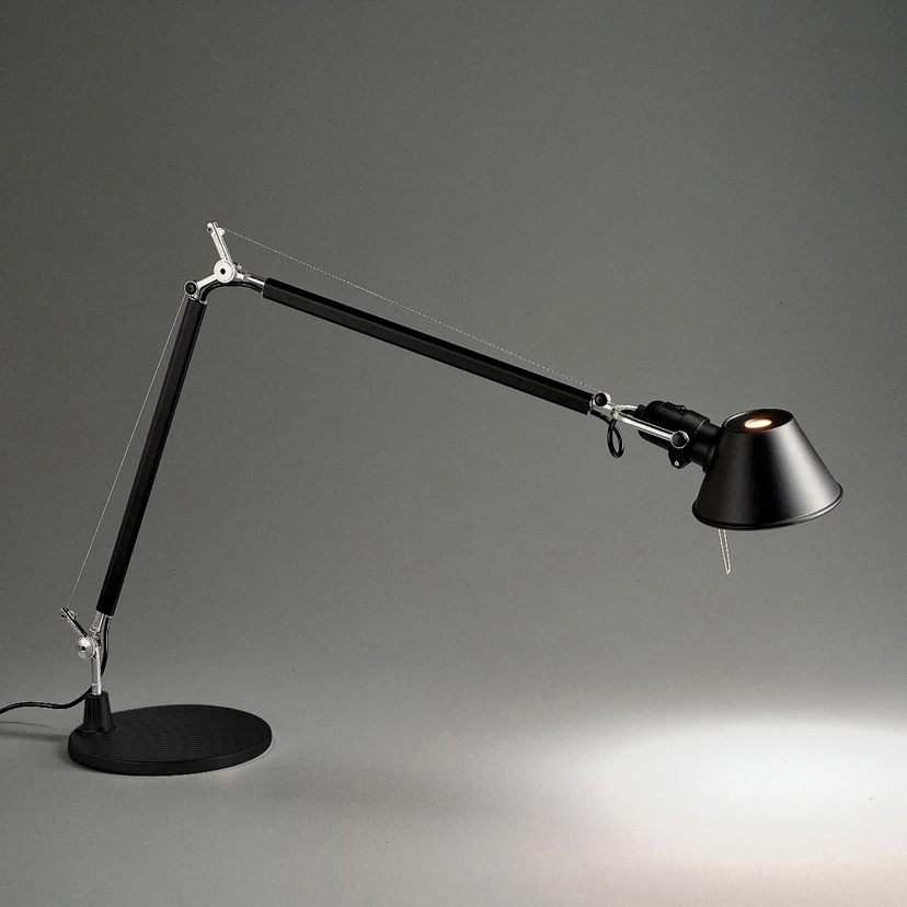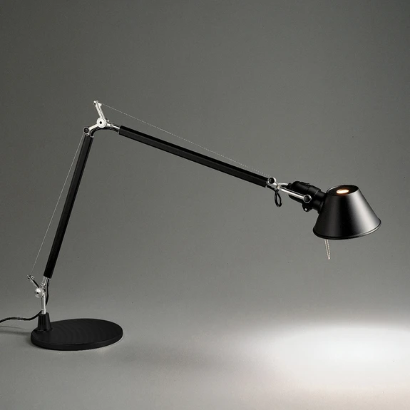 Die Designer-Tischleuchte Tolomeo ist ein unentbehrliches Accessoire auf jedem Schreibtisch. Das durchdachte und vielmals prämierte Design überzeugt mit einem einzigartigen Federausgleichssystem mit flexiblen Gelenken, welche eine individuelle Einstellung der Leuchte ermöglichen. Auch der Schirm kann individuell eingestellt werden. Dazu besitzt dieser einen kleinen Griff, mit dessen Hilfe komfortabel das Licht geführt werden kann.