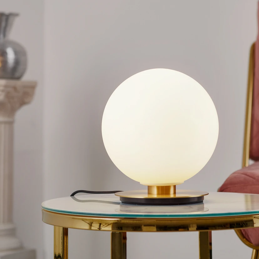 LED-Tischleuchte TR Bulb aus edlem Messing und Opalglas