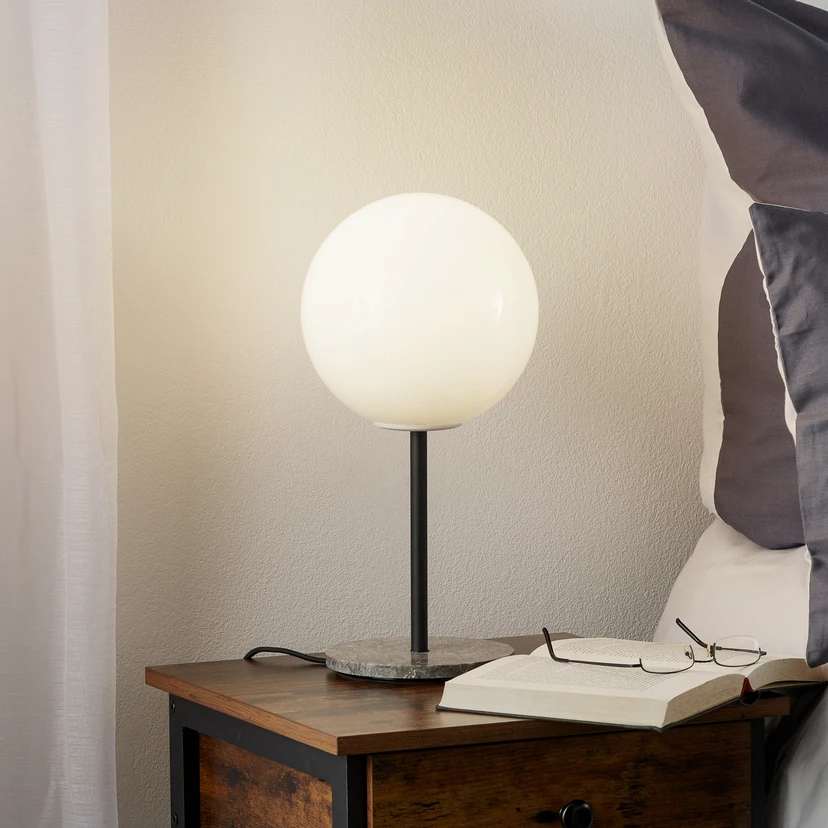 Dimmbare LED-Tischleuchte TR Bulb mit einem Leuchtenschirm aus Opalglas