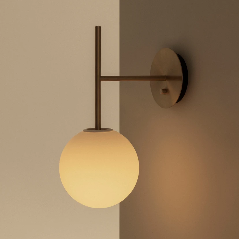 Die TR-Serie von Tim Rundle basiert auf dem modernen, nomadischen Lebensstil, der auf der Suche nach Abenteuern zwischen Städten und Ländern umherzieht. Die TR Bulb Suspended ist einfach in der Form, aber raffiniert im Ausdruck. Die TR Bulb aus Opalglas hängt an einem Arm aus gebürstetem Messing und vereint gerade Linien und runde Formen. Die dimmbare LED-Leuchte, die ein gleichmäßiges, blendfreies Licht abgibt, wird über einen Drehknopf an der Wandhalterung gesteuert. Die Leuchte ist mit einer Steckerzuleitung ausgestattet, kann aber auch fest verdrahtet werden.