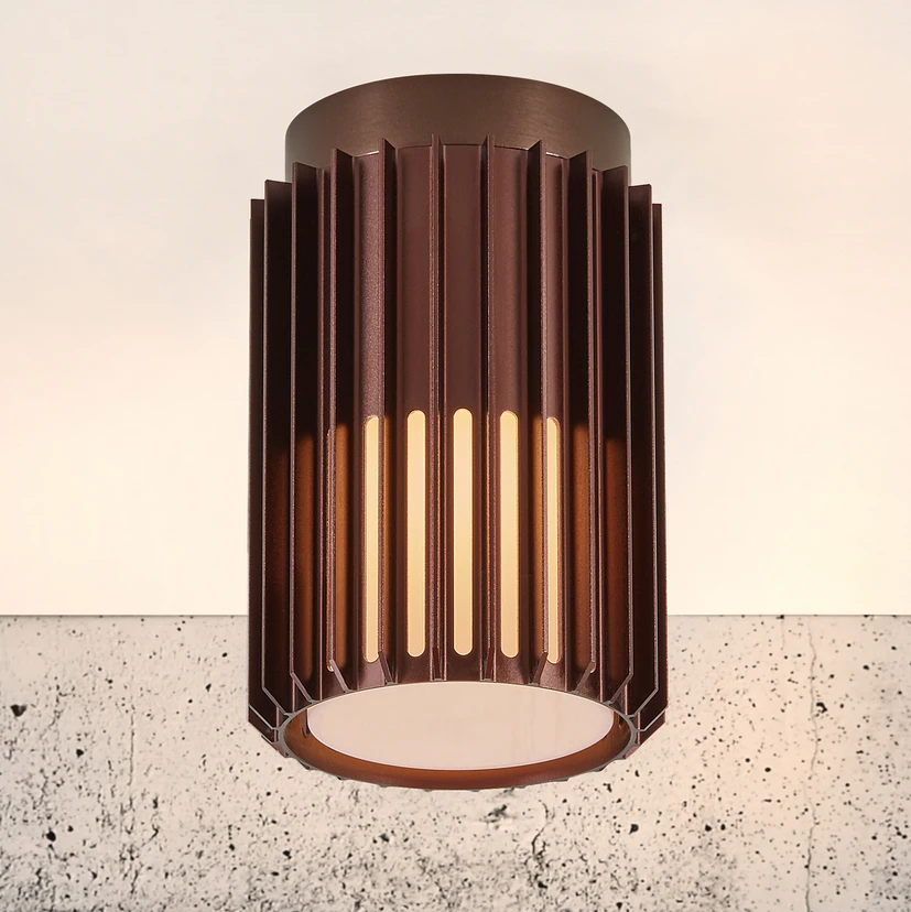 Aus gehärtetem, eloxiertem Aluminium besteht die Deckenleuchte Aludra für den Außenbereich und die Leuchtmittel-Fassung ist mit einem Plastikdiffusor vor Wind und Wetter geschützt. Die Serie ist rund gestaltet und durch feine Lamellen scheint das Licht im unteren Teil in alle Richtungen und bietet praktisches und innovatives Orientierungslicht. Die Gestaltung der Leuchte stammt von dem renommierten Jacob Jensen Design und wird von Nordlux aus Dänemark gefertigt.