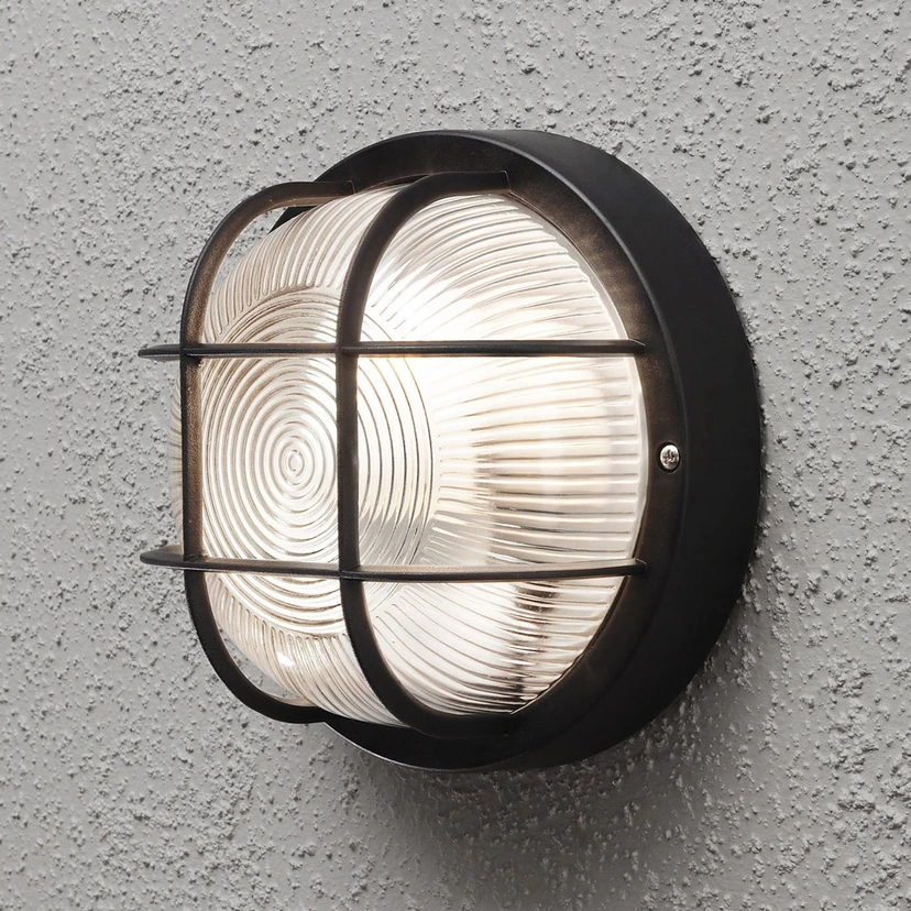 Leicht technisch wirkende Außenwandleuchte Elmas - runde Form
