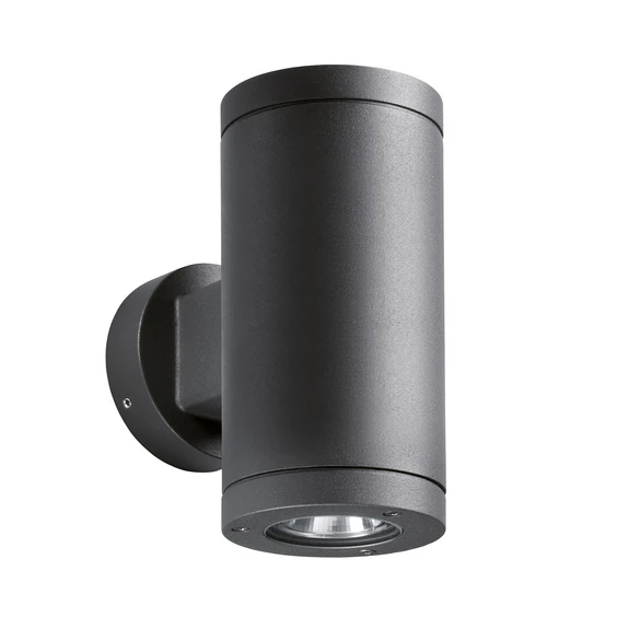 Die Außenwandleuchte 1060/1065 besticht mit robuster Verarbeitung. Sie besteht komplett aus druckgegossenem Aluminium, die Lichtquellen sind mit Floatglas abgeschirmt. Oben und unten ist in den röhrenförmigen Schirm jeweils eine GU10-Fassung verbaut.