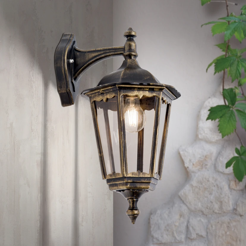 Außenwandleuchte Puchberg, hängend, schwarz-gold