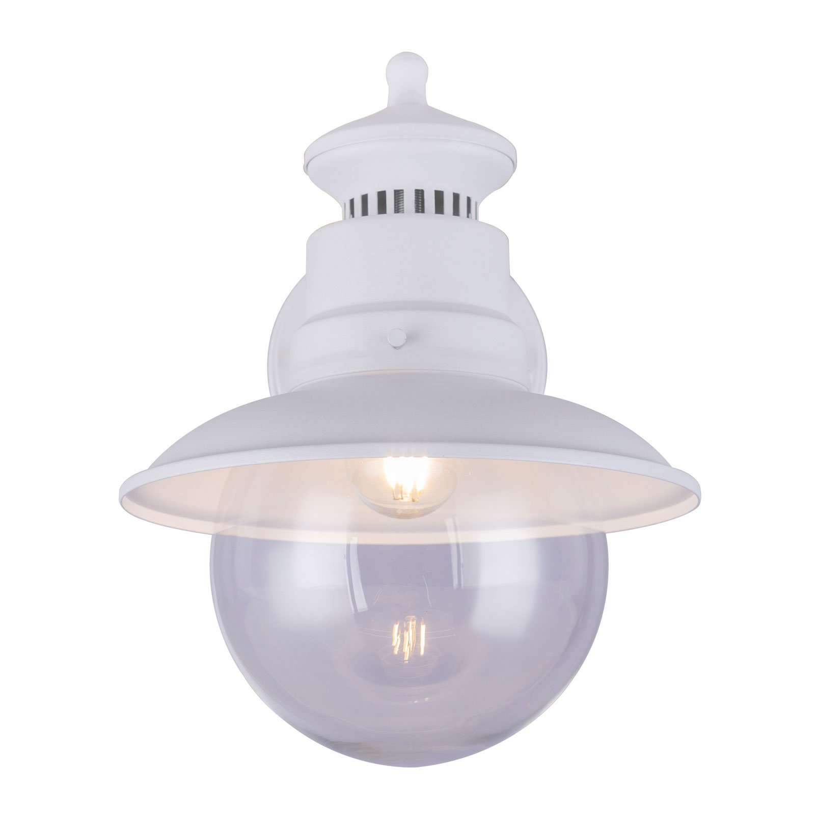 Nostalgische Gedanken werden mit der Außenleuchte Sella geweckt. Ihre trendige Vintage-Optik bekommt die Leuchte durch den Lampenschirm aus Stahl verliehen. Dieser erinnert an Designs aus vergangenen Jahrzehnten und passt damit hervorragend zu einem romantisch-rustikalen Ambiente. An dem Schirm befindet sich eine formschöne Kugel, welche aus transparentem Kunststoff besteht und so dem Licht erlaubt, ungehindert nach unten zu entweichen. Mit IP44 ausgestattet, kann die Leuchte problemlos im Außenbereich angebracht werden. Egal, ob zur Ausleuchtung eines Eingangs oder als stimmungsvolle Dekoration auf einer Terrasse - diese Leuchte ist überall ein Hingucker.