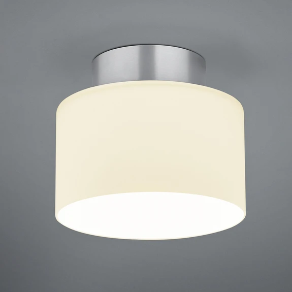 Der Schirm aus opalweißem Glas sorgt für eine leicht diffuse Lichtabgabe, ohne zu blenden. An der Decke befestigt wird Grand Opal über einen Baldachin aus eloxiertem Aluminium. Bereits integriert sind hochwertige LEDs, die für eine gute Grundbeleuchtung mit warmweißem Licht sorgen und dabei eine gute Farbwiedergabe gewährleisten.