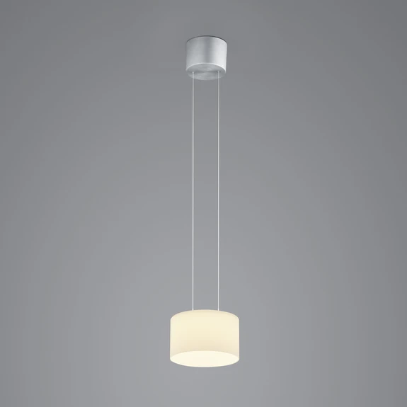 Die Abhängung der in Deutschland gefertigten LED-Hängeleuchte Grand Opal kann nicht nur bei der Installation eingestellt werden, sondern auch im Betrieb ist dies jederzeit möglich. Der Baldachin besteht aus eloxiertem Aluminium und trägt den aus opalweißem Glas hergestellten Schirm, der über zwei Seile an ihm aufgehängt ist.