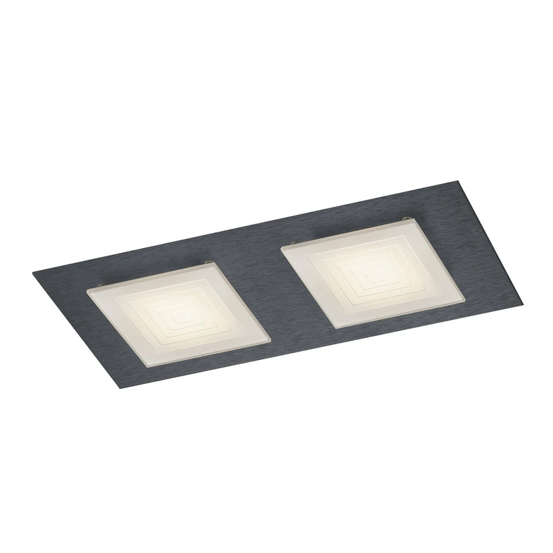 Fernbedienbare LED-Deckenleuchte Ino mit zwei strukturierten Lichtquadraten aus Opalglas