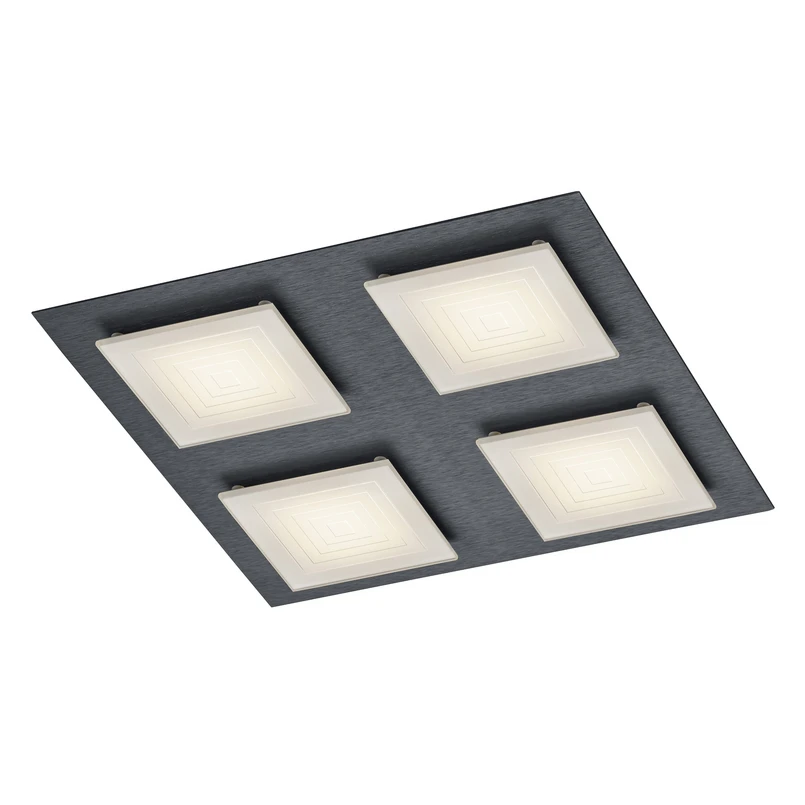 Fernbedienbare LED-Deckenleuchte Ino mit vier strukturierten Lichtquadraten aus Opalglas