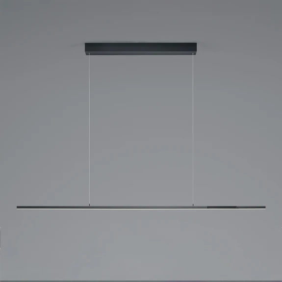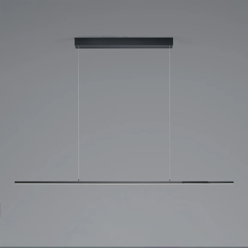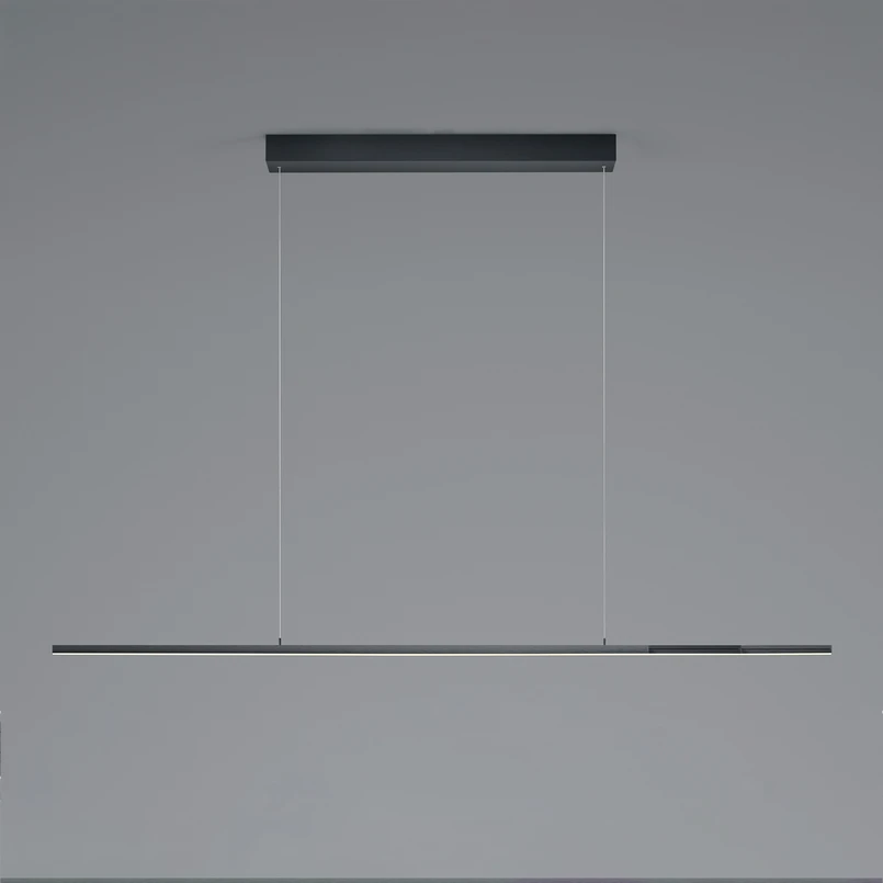 Die LED-Pendelleuchte ist im Wohnbereich vielseitig einsetzbar und glänzt mit modernem Design sowie hoher Funktionalität. Lightline V3 ist mit Tunable-White-Funktion ausgestattet, d.h. die Farbtemperatur kann in einem breiten Spektrum von stimmungsvollem Warmweiß bis hin zu kühlem Tageslichtweiß verändert werden, ganz so, wie es die persönlichen Bedürfnisse erfordern. Zudem ist Vertical Dim integriert, was eine sehr komfortable Lichtsteuerung bedeutet: Durch leichtes Kippen des Leuchtenkörpers kann die Beleuchtung stufenlos gedimmt werden. Der Dimmimpuls setzt bereits bei einer Neigung von 12 Grad ein. Wichtiger Hinweis: Es darf kein Dimmer vorgeschaltet sein. Die Länge der Leuchte kann durch Ausziehen im Bereich von 110 bis 203 cm variiert werden und auch die Abhängung lässt sich jederzeit anpassen. Lightline V3 ist außerdem mit einem Sensor ausgestattet, der sich in der Mitte der Leuchte befindet. Durch leichtes Wischen mit der Hand lassen sich die Lichtquellen ein- bzw. ausschalten.