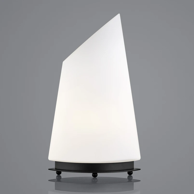 Die moderne Tischleuchte Navigare ähnelt einem Segel und das ist keine Überraschung: „Navigare“ stammt aus dem Lateinischen und bedeutet sinngemäß „segeln“. Die opalweiße, satinierte Oberfläche des Glasschirms ermöglicht eine angenehme, blendfreie Lichtabgabe.