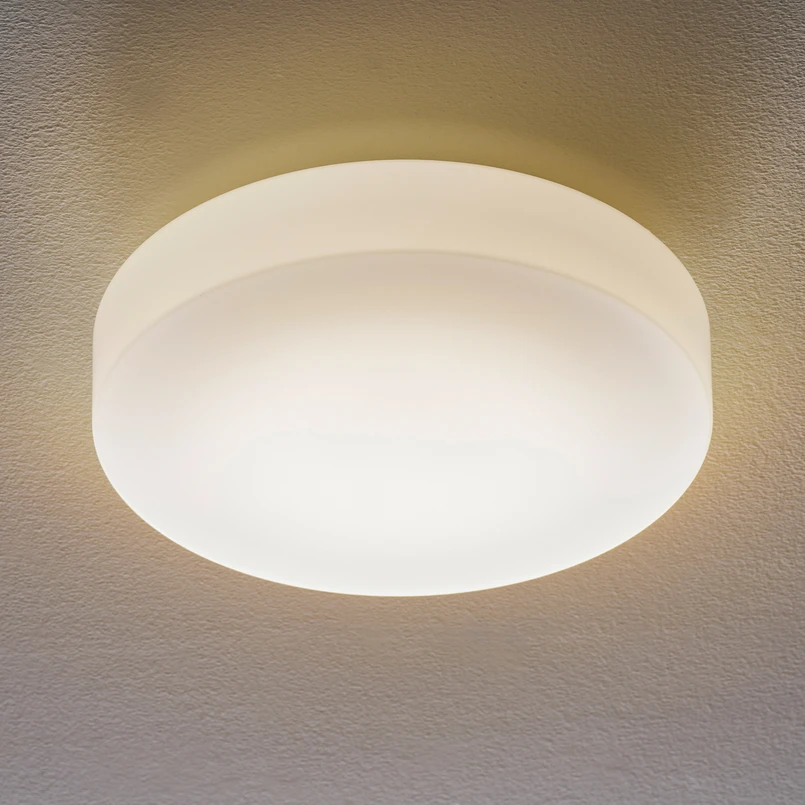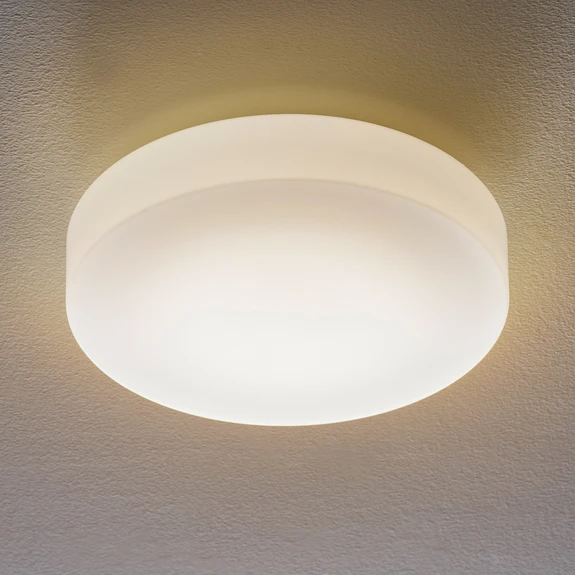 Diese Wand- und Deckenleuchte eignet sich durch den Spritzwasserschutz zur Verwendung in Badezimmern, Spa-Bereichen oder Eingängen. Das Metallgehäuse ist kleiner dimensioniert als der seidenmatte Diffusor aus mundgeblasenem Opalglas, sodass letzterer den gesamten sichtbaren Abschnitt der Leuchte bildet. Der hohe Lichtoutput sorgt für eine effektive Grundbeleuchtung, die dank der sanften Lichtwirkung zugleich angenehm wirkt. Das schlichte, weiße Design passt wunderbar in viele moderne Einrichtungen.