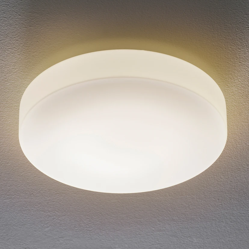 Diese Wand- und Deckenleuchte eignet sich durch den Spritzwasserschutz zur Verwendung in Badezimmern, Spa-Bereichen oder Eingängen. Das Metallgehäuse ist kleiner dimensioniert als der seidenmatte Diffusor aus mundgeblasenem Opalglas, sodass letzterer den gesamten sichtbaren Abschnitt der Leuchte bildet. Der hohe Lichtoutput sorgt für eine effektive Grundbeleuchtung, die dank der sanften Lichtwirkung zugleich angenehm wirkt. Das schlichte, weiße Design passt wunderbar in viele moderne Einrichtungen.