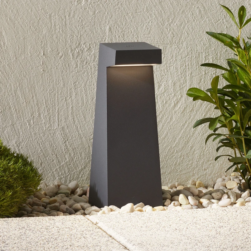 Bodennahe Beleuchtung für Wege und Eingänge bietet die grafitgraue LED-Sockelleuchte 77276/84108 aus dem Hause BEGA. Der modern gestaltete Korpus besteht aus Aluminium und Edelstahl, der Diffusor aus Sicherheitsglas. Die Leuchte ist nach oben hin abgeschirmt, so dass das Licht nur nach unten entweichen kann und damit eine gleichmäßige und blendfreie Beleuchtung von Wegen und Terrassen gewährleistet wird. Die Befestigung im Boden findet durch ein Erdstück (inkl.) aus feuerverzinktem Stahl statt.