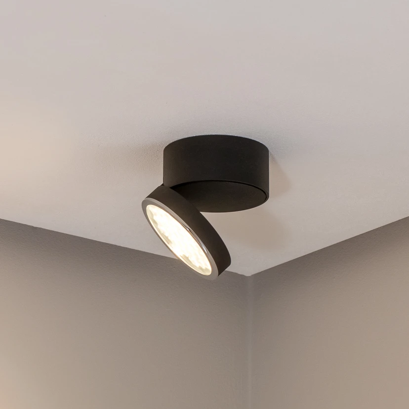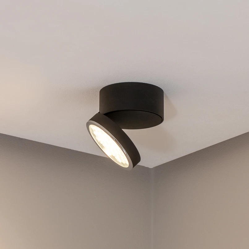 Die LED-Deckenleuchte 51312 lässt sich mit eingeklapptem Leuchtenkopf als Downlight und mit ausgeklapptem, um 355° rundum drehbaren uund um 68° schwenkbarem Leuchtenkopf als Strahler verwenden. Die Leuchte mit symmetrisch-streuender Lichtstärkeverteilung besteht aus Aluminiumdruckguss, Metall und einer Abdeckung aus Sicherheitsglas mit optischer Struktur..