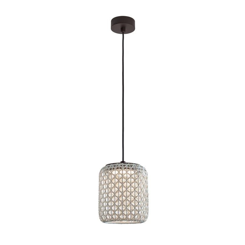 Das Design-Unternehmen Bover, ansässig in Barcelona, verkörpert mit seinen Produkten Made in Spain den mediterranen Lebensstil. Die Hängeleuchte Nans ist für den Außenbereich konzipiert, kann aber auch im Innenbereich verwendet werden. Der zylinderförmige Schirm ist aus einer synthetischen Faser geflochten, wobei verschiedenfarbige Fäden miteinander verwoben sind.