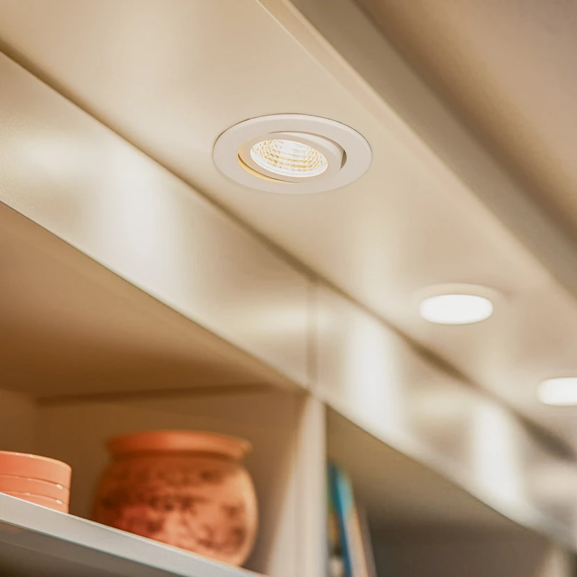 Dieser LED-Strahler ist ein modernes und flexibel einsetzbares Downlight zum Deckeneinbau für Hotellerie und Gastronomie und ebenso für den privaten Wohnbereich. Die Montage erfolgt werkzeugfrei mit zwei Haltefedern. Die aus Aluminium gefertigte, kreisförmige Leuchte verfügt über einen rundum schwenkbaren Kopf, der mit warmweiß leuchtenden LEDs bestückt ist.