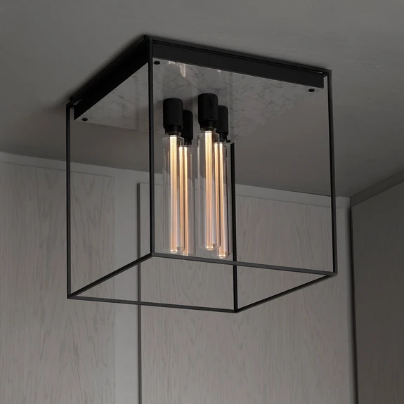 Caged Ceiling 4.0 - Deckenleuchte mit Marmorplatte, Metallkäfig und vier Fassungen