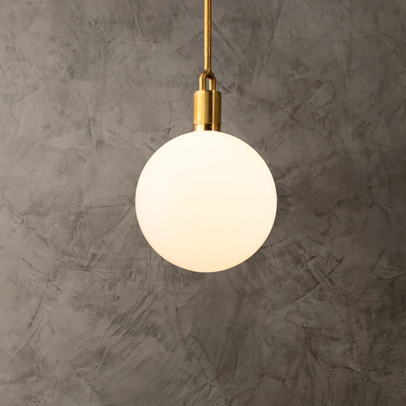 Pendelleuchte Forked aus Messing mit mundgeblasener Kugel aus Opalglas