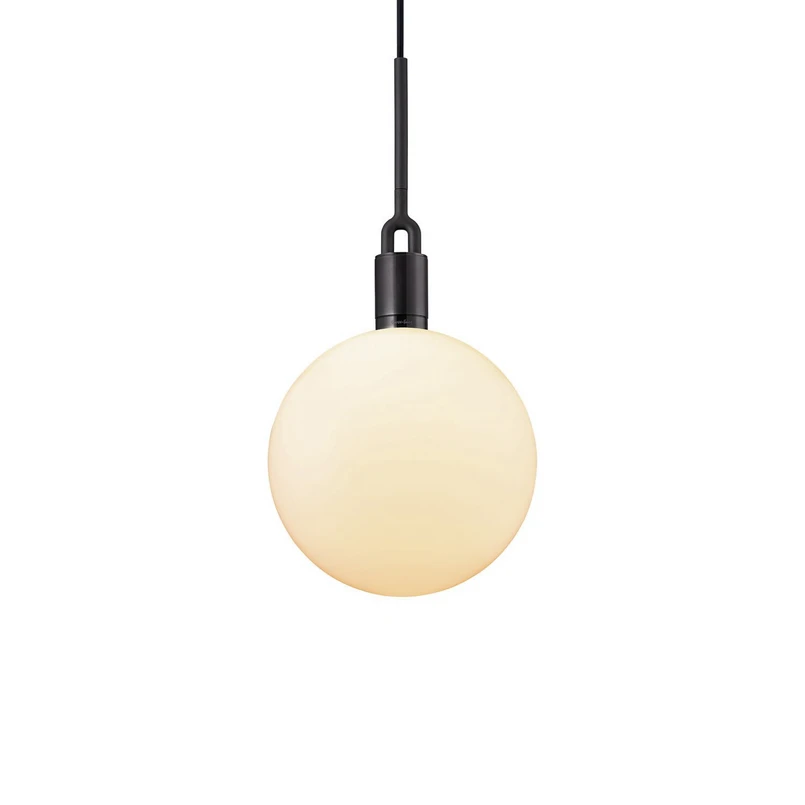 Pendelleuchte Forked aus Metall mit mundgeblasener Kugel aus Opalglas