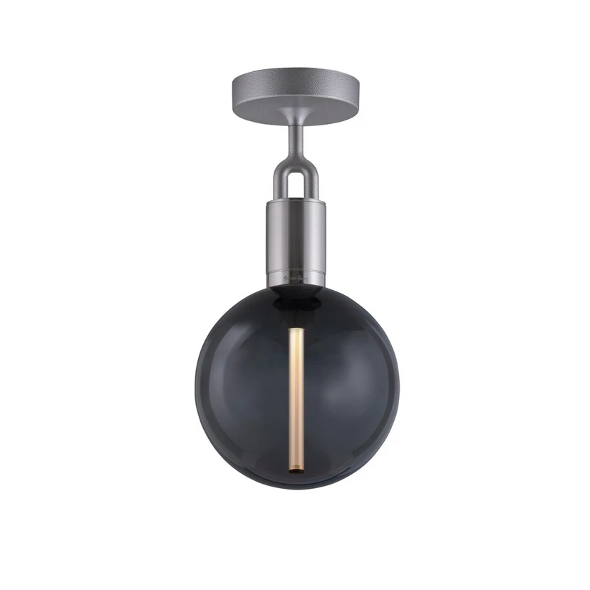Die Deckenleuchte Forked setzt sich aus einem Gestell aus massivem Stahl und einem kugelförmigen Leuchtenschirm aus mundgeblasenem Glas zusammen. Sie ist ein Produkt des englischen Labels Buster + Punch, einem Unternehmen, das nicht nur Leuchten, sondern auch Beschläge und Einrichtungsgegenstände fertigt und dessen Liebe zu massiven Metallen in jedem seiner Produkte zu erkennen ist. So wurde auch die Halterung der Deckenleuchte Forked aus bearbeitetem und gegossenem Vollmetall gefertigt und von Hand veredelt. Das einzigartige Gabeldetail und die lineare Rändelung im Diamantschliff an der Fassung sind besondere Merkmale des Herstellers.