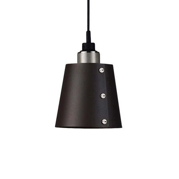Die Hängeleuchte Hooked 1.0 small lässt sich vielseitig in Küchen, Wohn- oder Esszimmern nutzen und bietet Flexibilität in der Platzierung, denn an dem separaten Aufhängungshaken lässt sich der als kleiner Kegelstumpf gestaltete Schirm entweder am Baldachin oder auch ein Stück davon entfernt an der Decke abhängen. So lassen sich auch kleinere Distanzen überbrücken, wenn der Deckenanschluss für eine Leuchte nicht direkt über dem Tisch liegt. Der mit drei sichtbaren Schrauben verschlossene Schirm der Hängeleuchte besteht ebenso wie der Baldachin und die Fassung aus massivem Metall. Ein besonderes Merkmal dieser Leuchte ist die oben aus Schirm leicht herausragende Fassung, die in ihrem besonderen Design an eine Schraubverbindung erinnert und der gesamten Leuchte einen besonderen Charme verleiht.