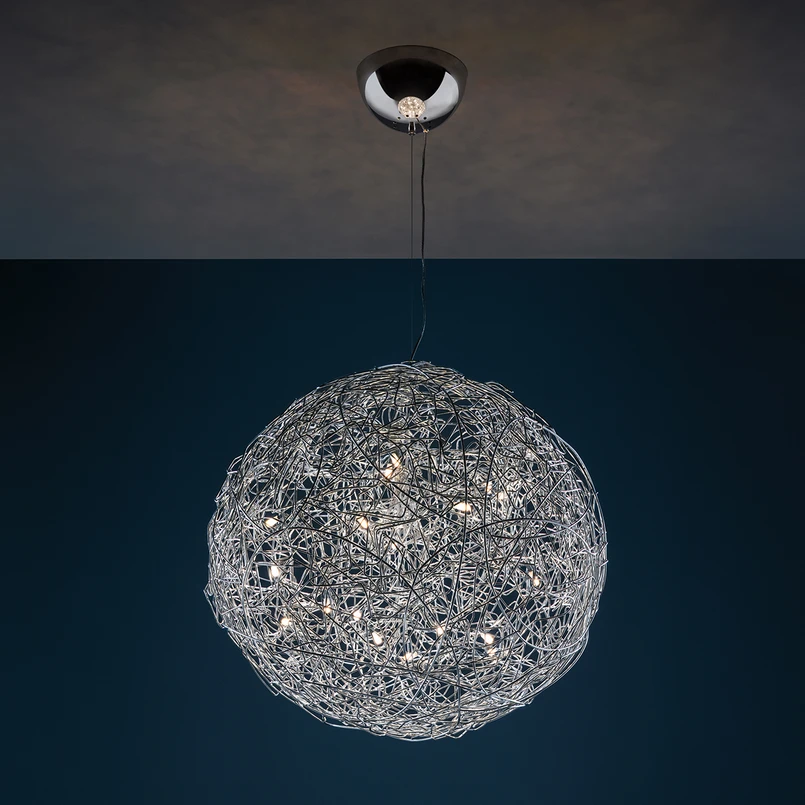Die von Hand aus unzähligen Aluminiumdrähten gefertigte LED-Pendelleuchte Fil de Fer zählt zu einer der bedeutsamsten Leuchtenkreationen des italienischen Leuchtenherstellers Catellani & Smith. Ihren Ursprung fand sie vor fast 20 Jahren, als der Gründer Enzo Catellani sie für einen speziellen Auftrag entwarf, zu dessen Abschluss es jedoch niemals kam, sodass die Leuchte in der meisterlichen Werkstatt hängen blieb. Als das besondere Design und die magische Lichtwirkung jedoch jeden Werkstattbesucher in Staunen und Faszination versetzten, beschloss Enzo Catellani die Leuchte weiterzuentwickeln und fertigzustellen.