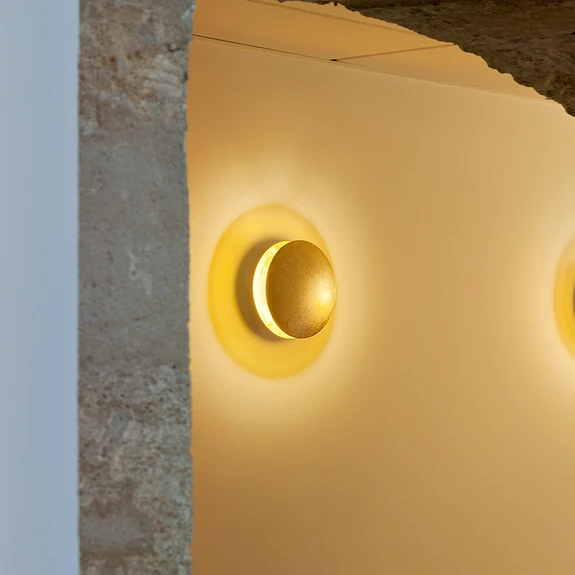 Die LED-Wandleuchte Lederam bringt Exklusivität, Eleganz und Glanz in Wohnräume und Flure im Wohn- und Objektbereich und spendet ein behagliches Licht, das sich durch die Verstellmöglichkeit verändern lässt. Die beiden runden Scheiben aus Aluminium sitzen mit geringem Abstand voreinander, in der vorderen Scheibe wurde ein sehr flaches LED-Modul verbaut, das die zweite Scheibe anstrahlt. Die Wandleuchte Lederam ist eine Leuchtenkreation des italienischen Herstellers Catellani & Smith. Das Unternehmen stellt Premiumleuchten in Handarbeit her, die aus hochwertigen Materialien erstklassig verarbeitet werden. Warme und weiche Farbtöne und in Metalltönen folierte Innenseiten der Scheiben lassen ein behagliches Licht entstehen, das jedes Ambiente verzaubert. Die vordere Scheibe scheint vor der hinteren Scheibe zu schweben und macht die Leuchte zu einem magischen Blickfang an der Wand.